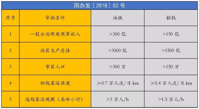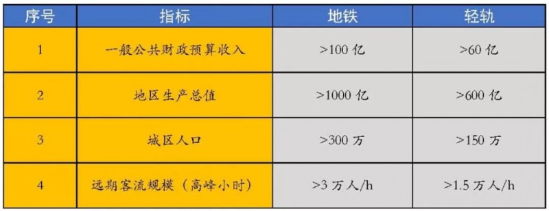 提高了準(zhǔn)入門檻。地鐵主要服務(wù)于城市中心城區(qū)和城市總體規(guī)劃確定的重點(diǎn)地區(qū),申報(bào)建設(shè)地鐵的城市一般公共財(cái)政預(yù)算收入應(yīng)在300億元以上,地區(qū)生產(chǎn)總值在3000億元以上,市區(qū)常住人口在300萬人以上。引導(dǎo)輕軌有序發(fā)展,申報(bào)建設(shè)輕軌的城市一般公共財(cái)政預(yù)算收入應(yīng)在150億元以上,地區(qū)生產(chǎn)總值在1500億元以上,市區(qū)常住人口在150萬人以上。擬建地鐵、輕軌線路初期客運(yùn)強(qiáng)度分別不低于每日每公里0.7萬人次、0.4萬人次,遠(yuǎn)期客流規(guī)模分別達(dá)到單向高峰小時(shí)3萬人次以上、1萬人次以上。