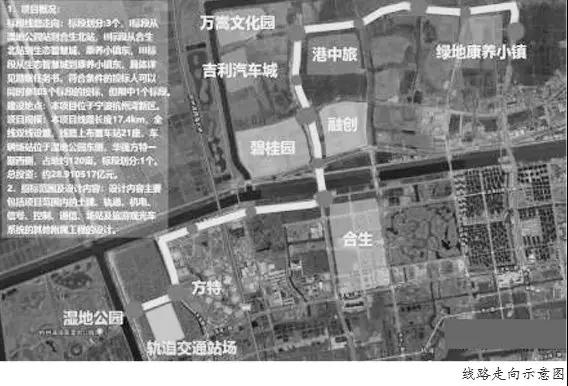 根據(jù)招標(biāo)公告顯示,杭州灣新區(qū)軌道交通一期工程總投資28.9億元,項目線路長度17.4公里;全線雙線設(shè)置,線路上布置車站21座;車輛場站位于濕地公園東側(cè),華強方特一期西側(cè),占地約120畝。