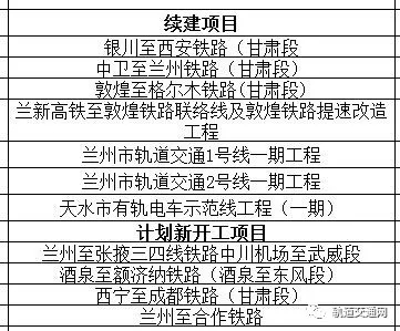 3月25日,甘肅省發(fā)改委網(wǎng)站公布《2019年省列重大項(xiàng)目名單》。名單顯示,2019年省列重大項(xiàng)目151個(gè),其中,續(xù)建項(xiàng)目78個(gè),計(jì)劃新增開工項(xiàng)目50個(gè),預(yù)備項(xiàng)目23個(gè)。其中軌交項(xiàng)目續(xù)建7項(xiàng)、計(jì)劃新增開工4項(xiàng)。包括蘭州市軌道交通1號(hào)線一期工程、蘭州市軌道交通2號(hào)線一期工程、天水市有軌電車示范線工程(一期)3項(xiàng)城市軌道交通,以及8項(xiàng)鐵路工程。