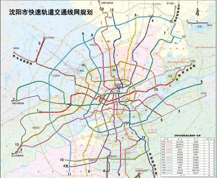 在規(guī)劃中,沈陽市城市軌道交通線網(wǎng)由“七橫、七縱、兩弦線”共計16條線組成,總長度為630公里,線網(wǎng)呈L放射型。