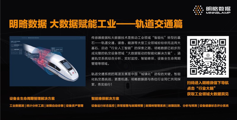 ——軌交系統(tǒng)的高速發(fā)展是“城鎮(zhèn)化”進(jìn)程的關(guān)鍵,自2015年實(shí)施第一個(gè)軌交大數(shù)據(jù)平臺項(xiàng)目開始,明略數(shù)據(jù)已經(jīng)初步形成了完整的軌交設(shè)備領(lǐng)域“大數(shù)據(jù)驅(qū)動的智能化解決方案”。