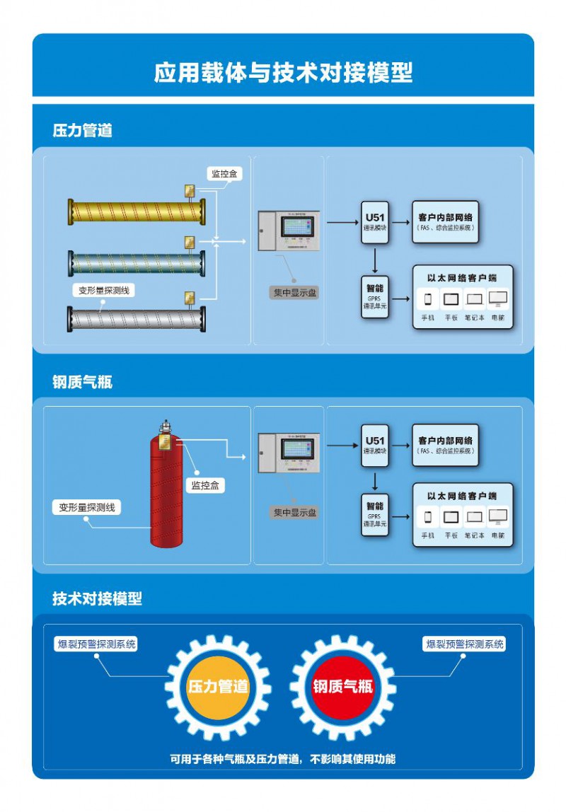 “我們正在積極投入更多的人力與物力資源,對產(chǎn)品的升級換代進(jìn)行嘗試,以求獲得更多突破。目前,對于最新的技術(shù)——iTube®鋼質(zhì)氣瓶及壓力管道爆裂預(yù)警探測系統(tǒng),我們也已經(jīng)對其進(jìn)行了更新?lián)Q代,新產(chǎn)品的探測線比原來的探測線靈敏度提高了6倍,已經(jīng)完全突破了最初的線,我們又進(jìn)行了更深一步線的技術(shù)儲備,以后用起來就更簡單。早期的探測線為了報警必須把鋼瓶表面處理很干凈,并與鋼瓶緊貼,這樣有變化時才能傳出來?,F(xiàn)在的探測線就不需要了,對原來舊鋼瓶的處理要求不高。而且同樣能全天24小時實時在線監(jiān)控,在壓力管瓶發(fā)生0.01毫米變化時,至少提前10天預(yù)警,實時提示出現(xiàn)的爆炸安全隱患,并能連續(xù)采集監(jiān)測信息,記錄并遠(yuǎn)程傳輸,定位出險點,更加安全、高效、節(jié)約、長壽。”
