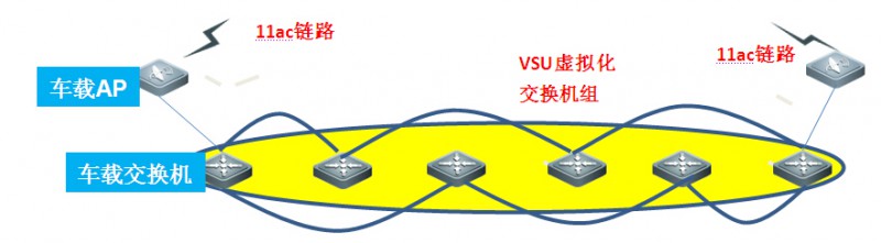 VSU虛擬化:將各車(chē)廂交換機(jī)虛擬成一個(gè)交換機(jī)單元,可進(jìn)行統(tǒng)一管理,策略統(tǒng)一下發(fā);通過(guò)環(huán)網(wǎng)實(shí)現(xiàn)有線鏈路冗余備份。