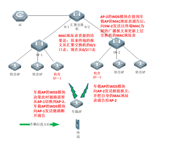 列車(chē)移動(dòng)過(guò)程中,AC端能夠根據(jù)車(chē)載AP的信號(hào)強(qiáng)度、鏈接速率等參數(shù),自動(dòng)切換到信號(hào)較好的AP上。