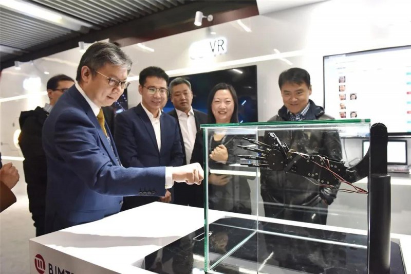 邵信明(左一)在4號(hào)線首個(gè)5G試點(diǎn)車(chē)站,體驗(yàn)互動(dòng)裝置
