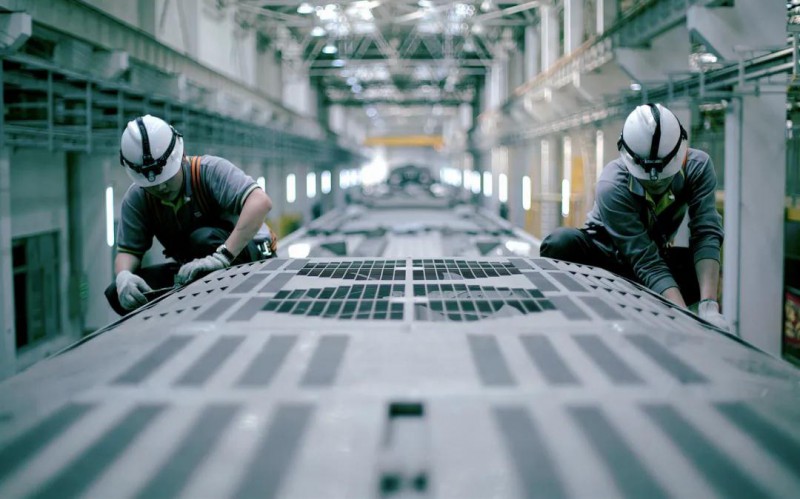 工作人員檢修列車(chē)