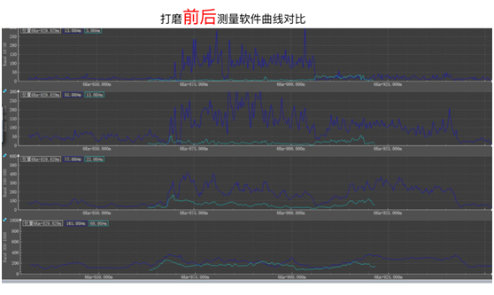 圖9 波磨打磨前后數(shù)據(jù)(深藍(lán)色為打磨前,亮青色為打磨后)