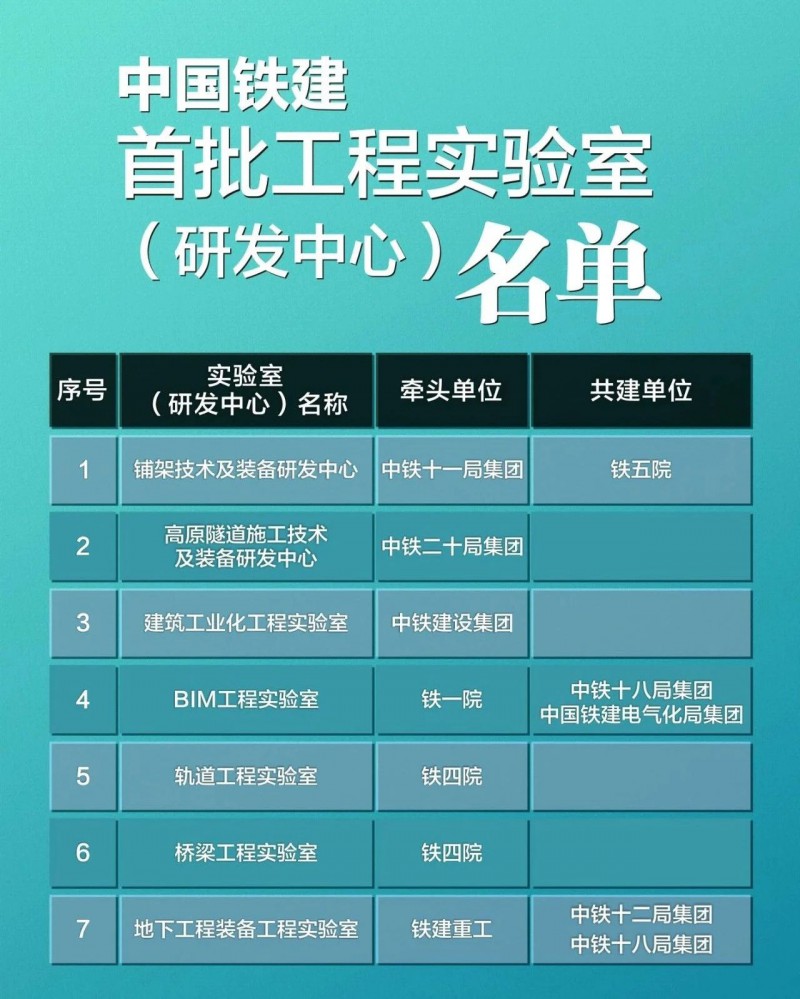 此次首批通過(guò)驗(yàn)收的實(shí)驗(yàn)室為鋪架技術(shù)及裝備研發(fā)中心、高原隧道施工技術(shù)及裝備研發(fā)中心、建筑工業(yè)化工程實(shí)驗(yàn)室、BIM工程實(shí)驗(yàn)室、軌道工程實(shí)驗(yàn)室、橋梁工程實(shí)驗(yàn)室、地下工程裝備工程實(shí)驗(yàn)室。