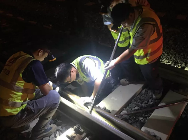 其實(shí),為了能保證道岔擁有極其良好的狀態(tài),在夜深人靜的時(shí)候,會有一群“小黃人”對其進(jìn)行保養(yǎng)和維修,以確保不耽誤第二天的正常使用。