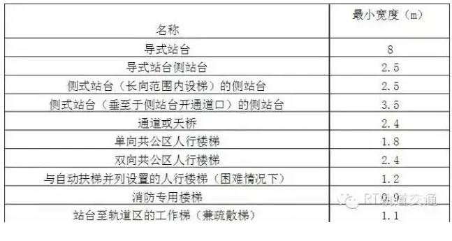 (2)站臺(tái)寬度:應(yīng)按車站客流量計(jì)算確定,但不得小于《地鐵設(shè)計(jì)規(guī)范》(GB 50157)表8.3.17-1 規(guī)定的數(shù)值。