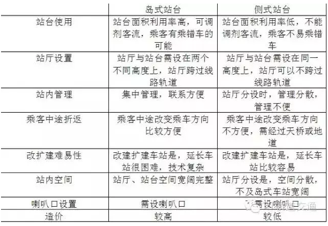 (6)島式站臺(tái)與側(cè)式站臺(tái)優(yōu)缺點(diǎn)比較表: