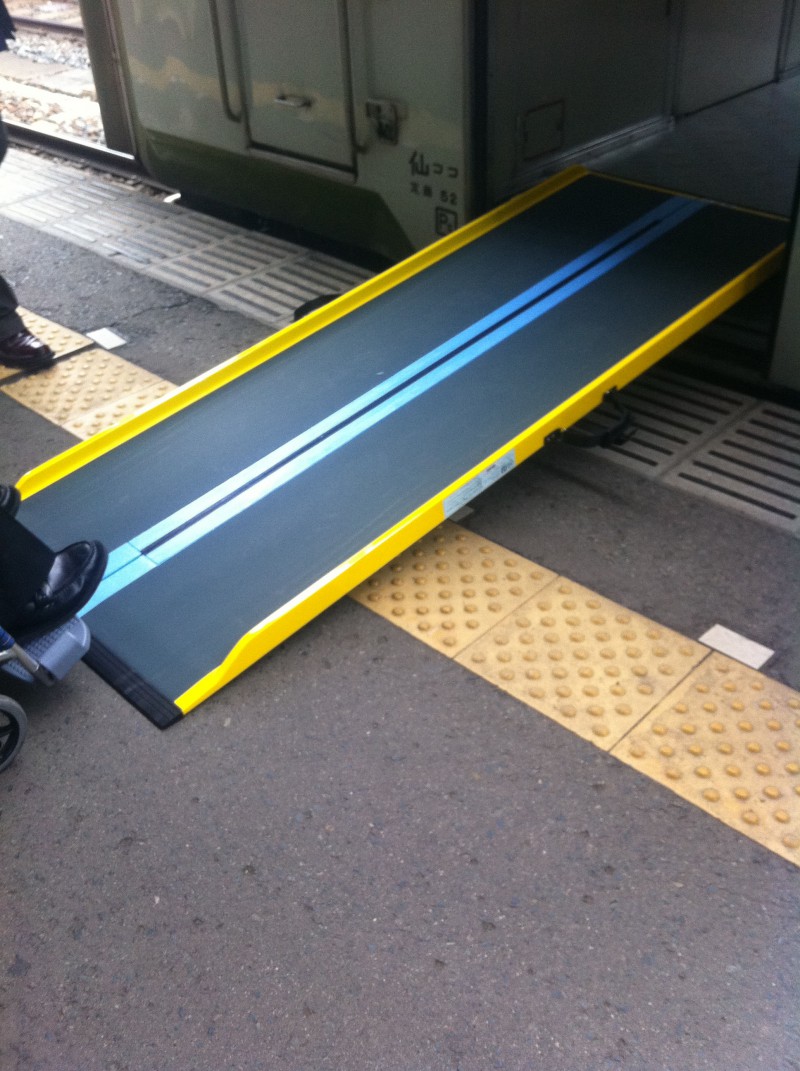 在日本,一些輪椅使用者在上新干線或地鐵等列車時可能會遇到困難,因為站臺與火車或突出的門軌之間存在較大的間隙。鄧祿普DUNLOP便攜式斜坡板使這一問題迎刃而解。便攜式輪椅斜臺板不僅為您提供了連接橋梁,而且特制的金屬件也有助于齊平門軌,方便輪椅使用者順利上車。