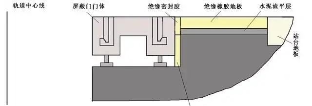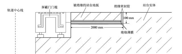 為了避免乘客觸電的危險(xiǎn),將屏蔽門整個(gè)下部支撐結(jié)構(gòu)的表面涂上特殊的絕緣材料,同時(shí)在屏蔽門前方900mm范圍內(nèi)鋪設(shè)了橡膠地板,達(dá)到了雙重絕緣的效果,簡稱橡膠地板方案。還可以在站臺層內(nèi)敷設(shè)絕緣薄膜的方式,形成絕緣帶,也可以達(dá)到同樣的效果,簡稱絕緣薄膜方案。