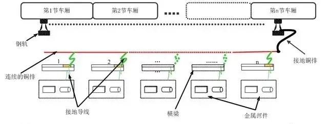 針對屏蔽門系統(tǒng)接地要求,屏蔽門單元之間電氣連接成一個(gè)等電位體,再連接至鋼軌,確保乘客不會因屏蔽門與車體的電位差受到電擊。