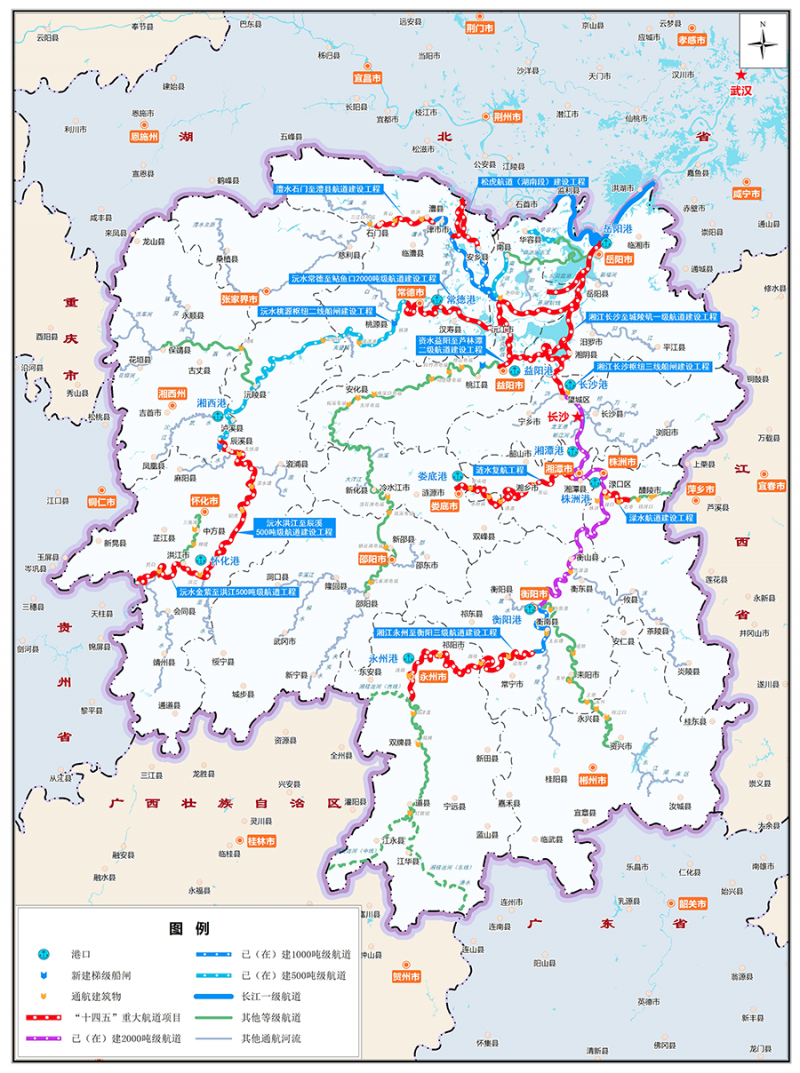 7.“一江一湖四水”:一江,長(zhǎng)江;一湖,洞庭湖,主要包括四水入洞庭的尾閭段和湖區(qū)航道;四水,湘、資、沅、澧干流及重要支流。