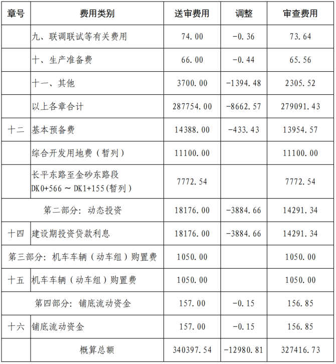 (四)征地拆遷按照《國家土地法》和廣東省關(guān)于征地拆遷相關(guān)規(guī)定分析計列,結(jié)合可行性研究批復(fù)意見,本階段綜合開發(fā)用地費用暫按1.11億元計列。經(jīng)審查,核定初步設(shè)計概算為327416.73萬元。