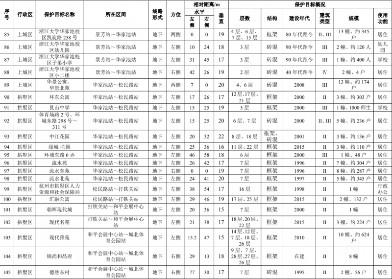 (1)振動(dòng)影響概述:列車運(yùn)行產(chǎn)生振動(dòng),通過地層傳播至地面環(huán)境敏感目標(biāo)產(chǎn)生振動(dòng)影響。對照《古建筑防工業(yè)振動(dòng)技術(shù)規(guī)范》(GB/T 50452-2008),浙江農(nóng)業(yè)大學(xué)舊址與蕭山火車西站段歷史文化街區(qū)的振速影響超標(biāo)。