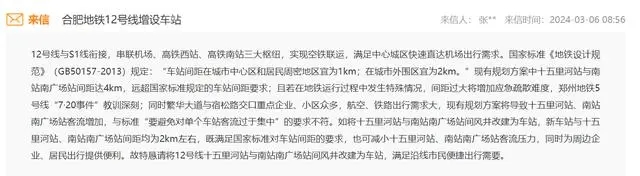 近日,有網友在安徽省發(fā)改委留言建議:12號線與S1線銜接,串聯機場、高鐵西站、高鐵南站三大樞紐,實現空鐵聯運,滿足中心城區(qū)快速直達機場出行需求;將12號線十五里河站與南站南廣場站間風井改建為車站,滿足沿線市民便捷出行需要。