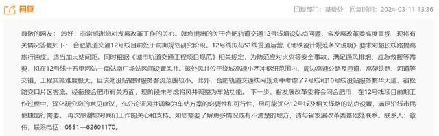 下一步,省發(fā)展改革委將會同合肥市,在12號線項目前期工作過程中,深化研究您的意見建議,充分論證風井調整為車站方案的必要性和可行性,盡可能優(yōu)化12號線及相關線路的站點設置,滿足沿線市民便捷出行需要。