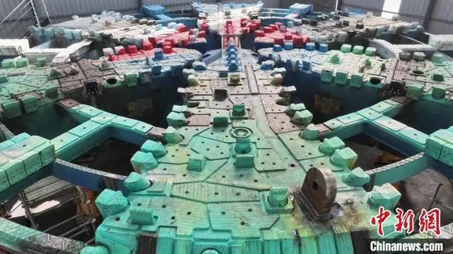 3月21日,由中國自主研制的世界最大直徑高鐵盾構(gòu)機(jī)“領(lǐng)航號(hào)”完成刀盤焊接,將投用于崇太長江隧道建設(shè)。黃春暉 攝