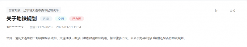 近日,有網(wǎng)友咨詢(xún)大連地鐵規(guī)劃相關(guān)問(wèn)題,具體如下: