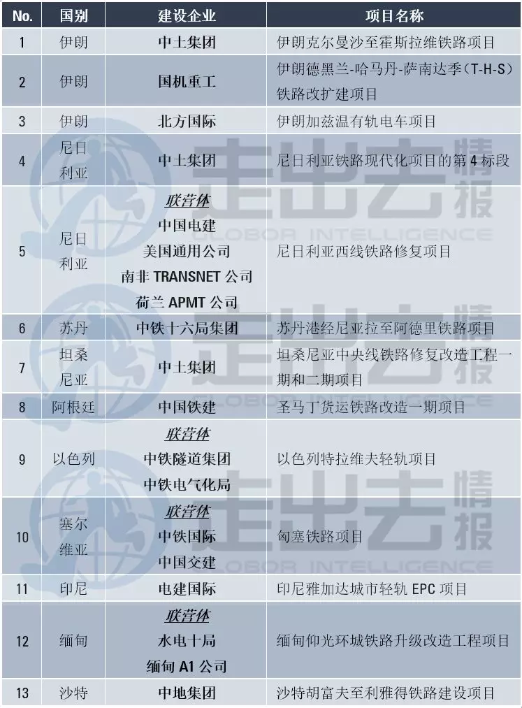2018年中國(guó)企業(yè)海外軌道交通建設(shè)項(xiàng)目