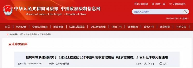 住房和城鄉(xiāng)建設(shè)部起草了《建設(shè)工程消防設(shè)計(jì)審查和驗(yàn)收管理規(guī)定(征求意見稿)》,現(xiàn)向社會公開征求意見。公眾可以在2019年6月10日前,通過以下途徑和方式提出意見: