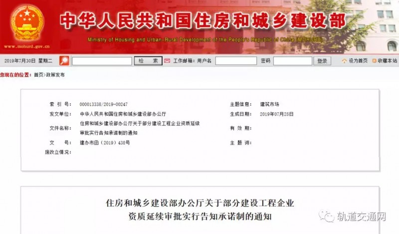 一、自2019年9月1日起,我部負責的工程勘察、工程設(shè)計、建筑業(yè)企業(yè)、工程監(jiān)理企業(yè)資質(zhì)延續(xù)審批實行告知承諾制,不再委托各省級住房和城鄉(xiāng)建設(shè)主管部門實施資質(zhì)延續(xù)審查工作。