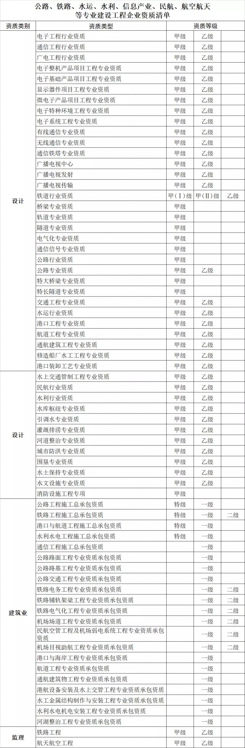 附件:公路、鐵路、水運、水利、信息產(chǎn)業(yè)、民航、航空航天等專業(yè)建設(shè)工程企業(yè)資質(zhì)清單