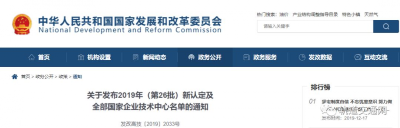 根據(jù)《國(guó)家企業(yè)技術(shù)中心認(rèn)定管理辦法》(國(guó)家發(fā)展改革委 科技部 財(cái)政部 海關(guān)總署 稅務(wù)總局2016年第34號(hào)令),經(jīng)審定,現(xiàn)將第26批國(guó)家企業(yè)技術(shù)中心名單及全部國(guó)家企業(yè)技術(shù)中心名單通知如下。