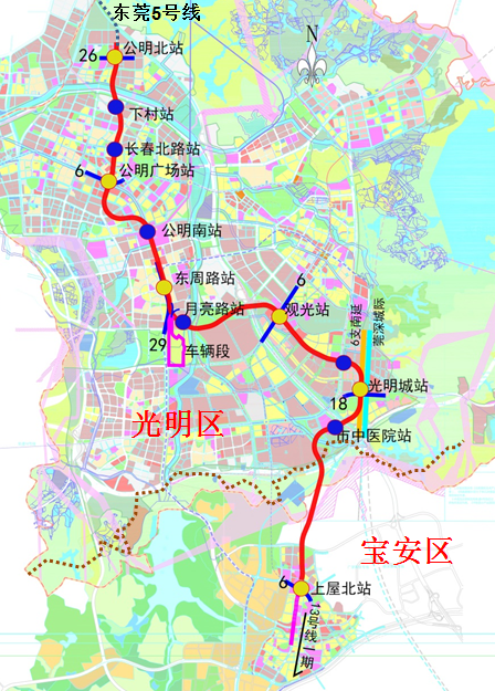 建設(shè)內(nèi)容:深圳市城市軌道交通13號線二期工程(北延)位于深圳市寶安區(qū)、光明區(qū)內(nèi)。線路起于13號線一期工程上屋北站(不含),穿大眼山后主要沿鵝頸西路—長圳路—茶林路—觀光路—塘宏路--松白路—長春路—炮臺路敷設(shè),止于公明北站,線路全長約19.296km,共設(shè)站11座。設(shè)車輛段一座,不新建主所,控制中心設(shè)置于深圳市軌道交通線網(wǎng)控制中心(NOCC)內(nèi)。