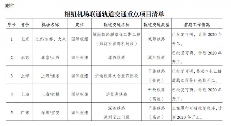 附件:樞紐機場聯通軌道交通重點項目清單