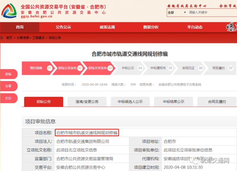 近日,從安徽合肥公共資源交易中心獲悉,合肥市城市軌道交通線網(wǎng)規(guī)劃修編正在招標(biāo)。
