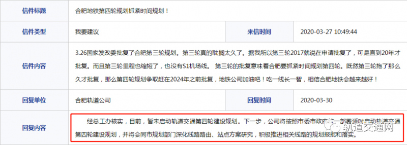 曾有市民3月份在12345信箱中咨詢地鐵第四輪規(guī)劃相關(guān)事宜。