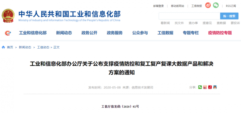 關于公布支撐疫情防控和復工復產復課大數據產品和解決方案的通知