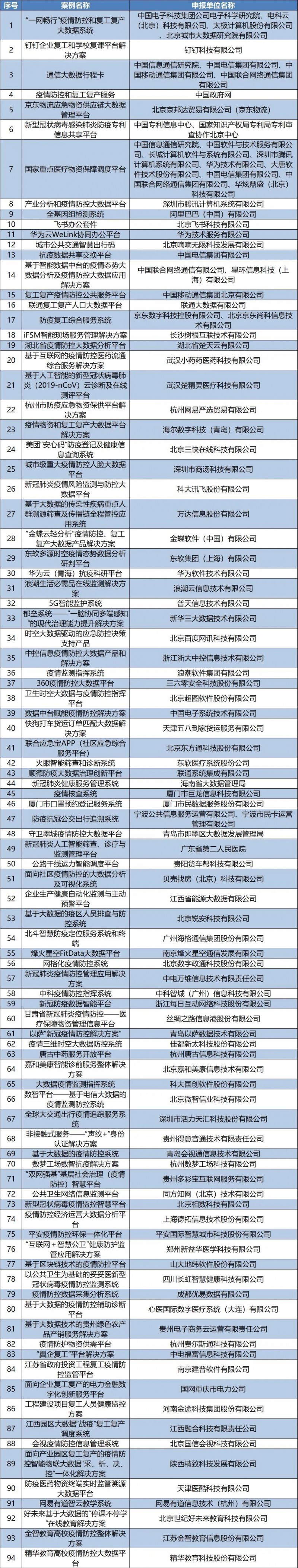 附件:疫情防控和復工復產復課大數據產品和解決方案名單