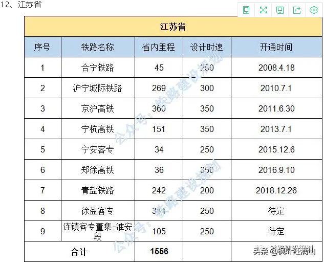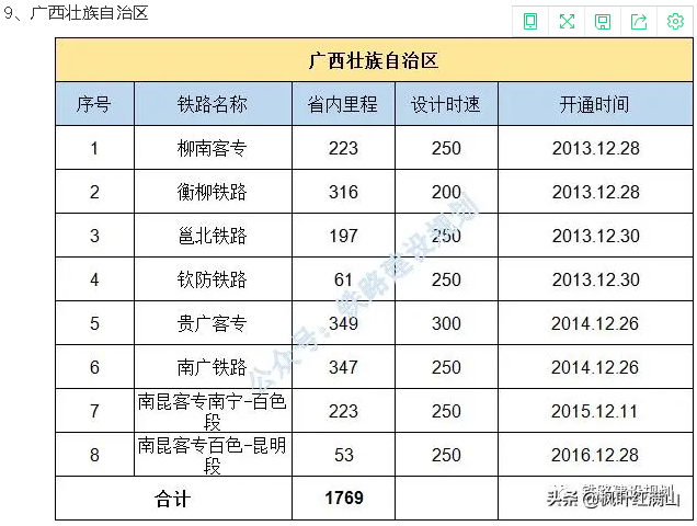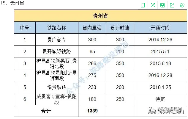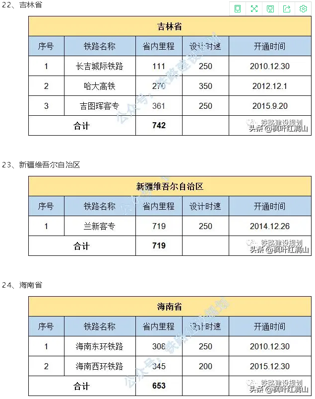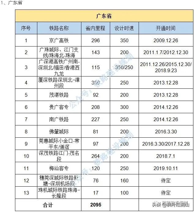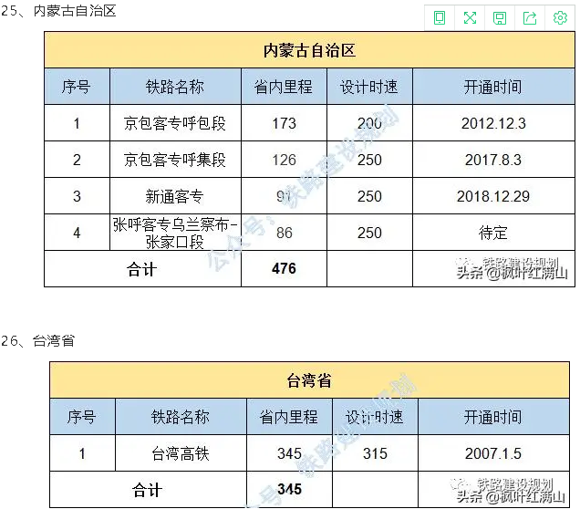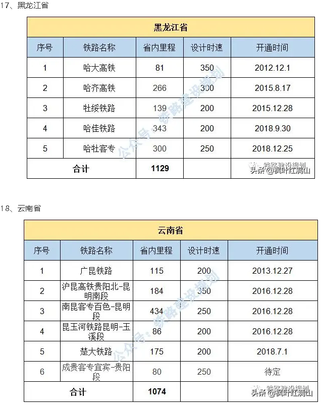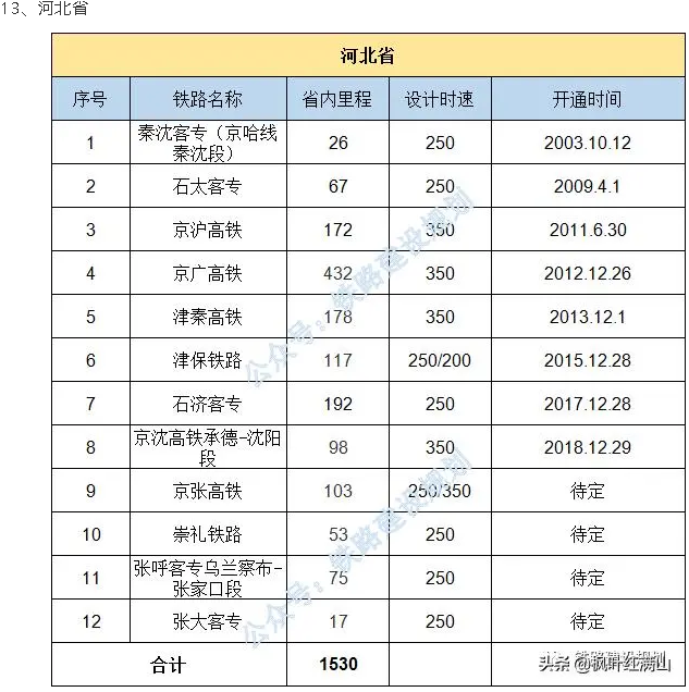 需要說明的是,本次高鐵統(tǒng)計的范圍包括:時速300-350公里的高鐵、時速250公里的客專以及新建時速200公里的客貨共線鐵路以及城際鐵路,部分既有線改造或新建時速160公里且已開通動車的線路未納入統(tǒng)計,如宜萬鐵路、漢丹鐵路、石長鐵路、寧啟鐵路、長白鐵路、呼準(zhǔn)鄂鐵路等。
