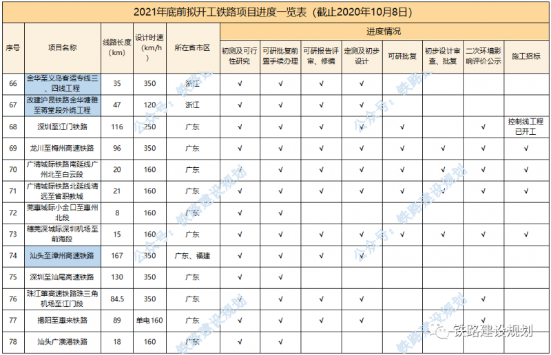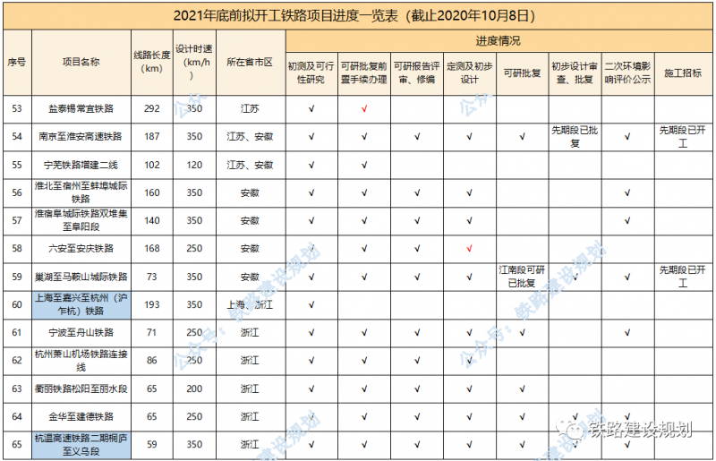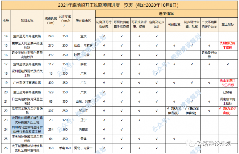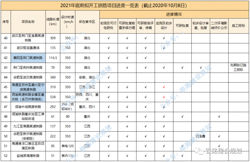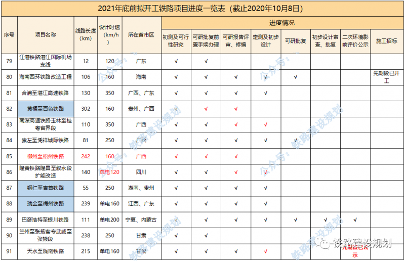 2021年底前計(jì)劃開工鐵路前期進(jìn)度一覽表▼