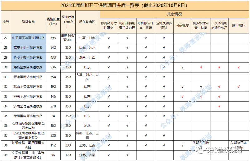 8、山東濰坊至煙臺高鐵初步設(shè)計(jì)已獲批,濰坊至煙臺、萊西至榮成高鐵施工招標(biāo)公告已發(fā)布。