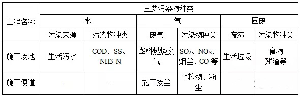 施工過程中各類工程污染物發(fā)生種類情況詳見表3。
