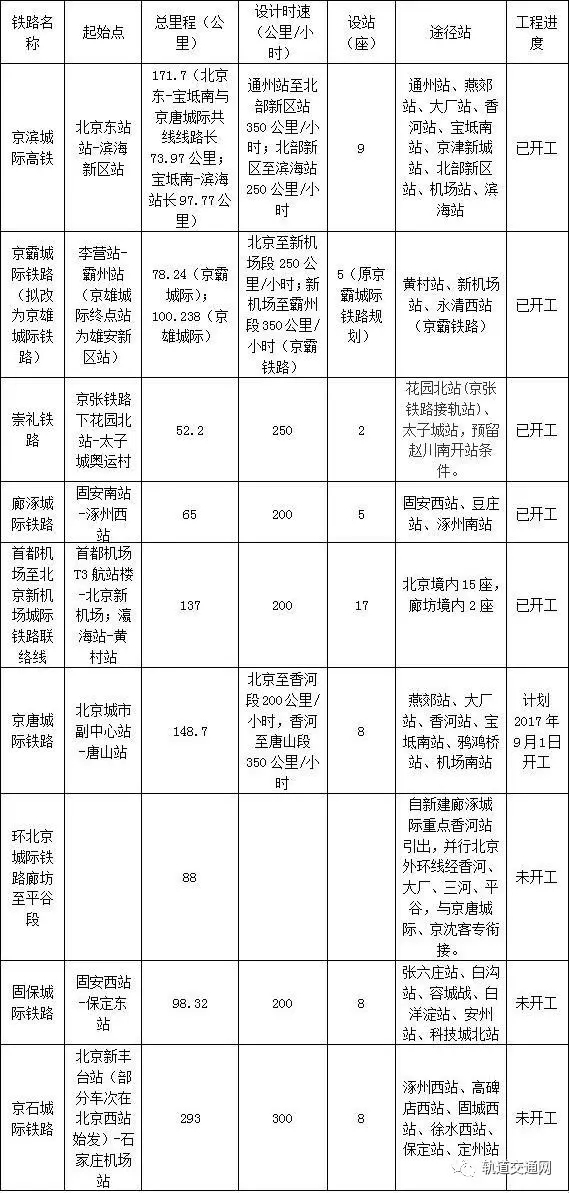 表 未來五年京津冀9條城際鐵路線建設(shè)詳情及進(jìn)展