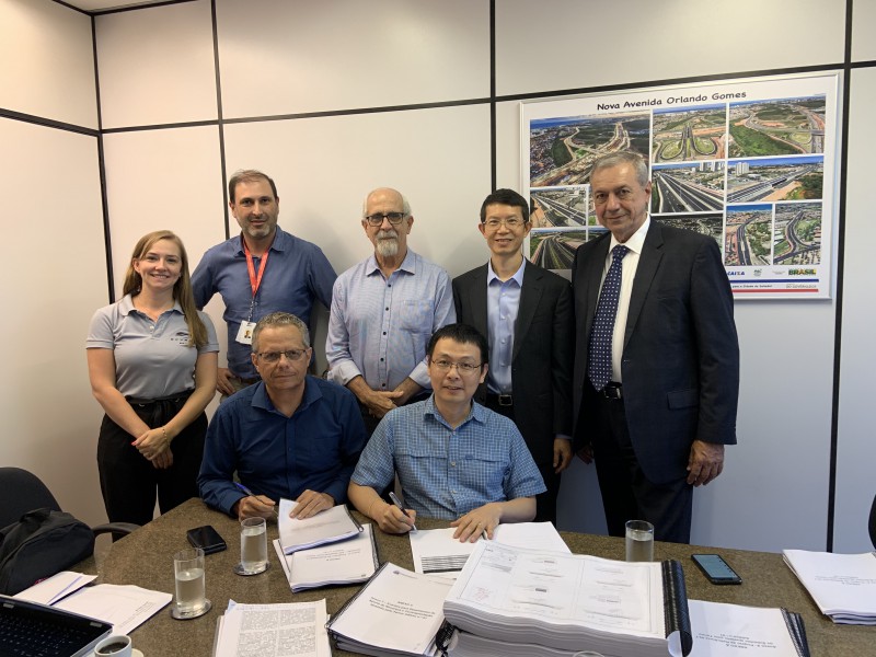在巴伊亞州民政部長Bruno Dauster(后排中)的見證下,比亞迪巴西分公司總經(jīng)理李鐵與巴伊亞州交通運(yùn)營公司CTB主席José Eduardo Ribeiro Copello共同簽署整體設(shè)計(jì)方案合約