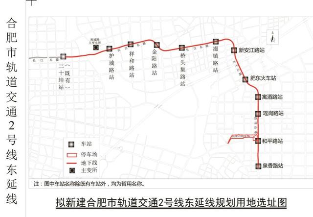 從公示內(nèi)容來看,合肥市軌道交通2號線東延線項目起于2號線三十埠站,主要沿長江東路、規(guī)劃太子山路、規(guī)劃四頂山路敷設(shè),止于泉香路,正線線路全長14.5公里,全地下敷設(shè),共設(shè)置車站11座,主變電站1座,停車場一座。