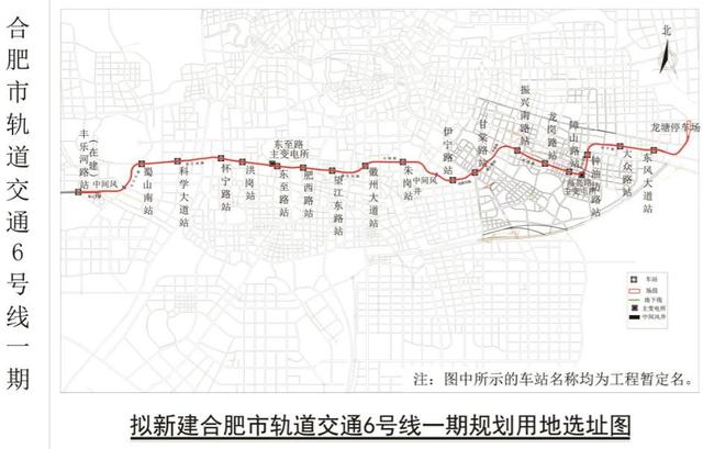 合肥市軌道交通6號線一期工程,本次選址起于豐樂河路站,主要沿蜀山大道、玉蘭大道、望江西路、望江東路、太湖路、堯渡河路、高亮路、鐘油坊路、和平路等道路敷設(shè),本次新建線路長約27.5公里,新建車站17座,區(qū)間風(fēng)井2處。
