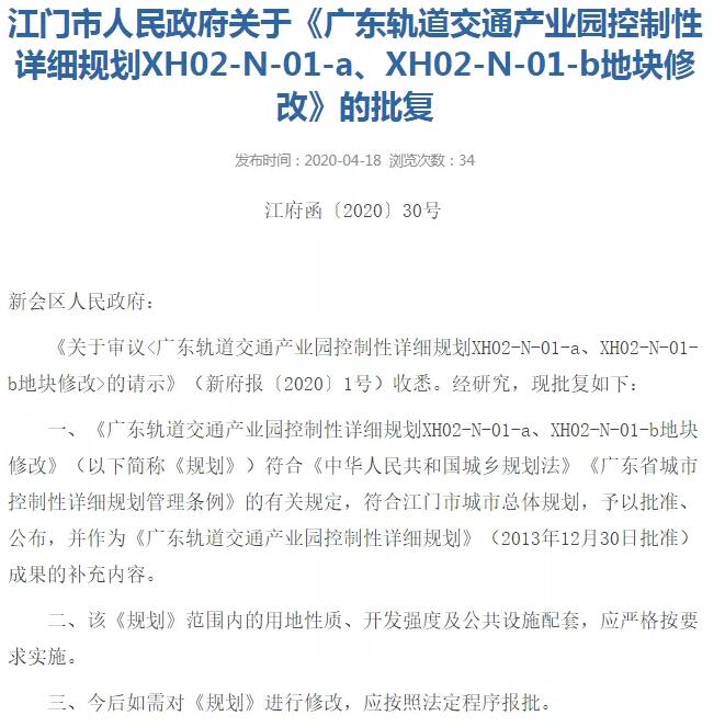 近日,江門公布了廣州軌道交通產(chǎn)業(yè)園控制性詳細(xì)規(guī)劃獲批情況,以下為詳情: