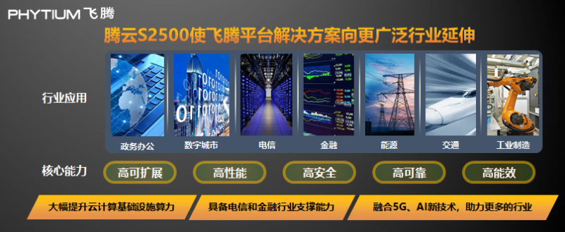 飛騰公司解決方案總監(jiān)楊威表示,騰云S2500將依托高可擴展、高性能、高安全、高可靠、高能效這五大核心能力,大幅提升政務(wù)云和大數(shù)據(jù)基礎(chǔ)設(shè)施底座的算力,并使飛騰平臺逐步具備了對算力要求更高的電信、金融等新基建核心行業(yè)核心業(yè)務(wù)的支撐能力。通過賦能云計算、大數(shù)據(jù)、邊緣計算、5G、AI、區(qū)塊鏈等技術(shù),騰云S2500將在數(shù)據(jù)中心、云計算平臺、虛擬化、物聯(lián)網(wǎng)等領(lǐng)域和政務(wù)、數(shù)字城市、電信、金融、能源、交通、工業(yè)制造等眾多行業(yè)獲得廣泛應(yīng)用。