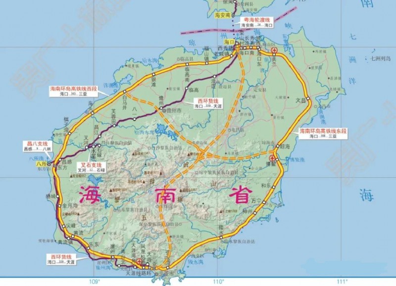 既有西環(huán)普速鐵路??谥翓|方段規(guī)劃進行雙線電氣化和旅游化改造,全長200公里。