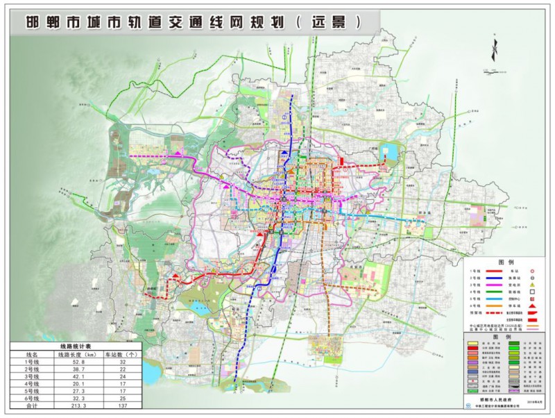邯鄲市城市軌道交通線網(wǎng)(遠景)由6條線路組成,總長度213.3公里。
