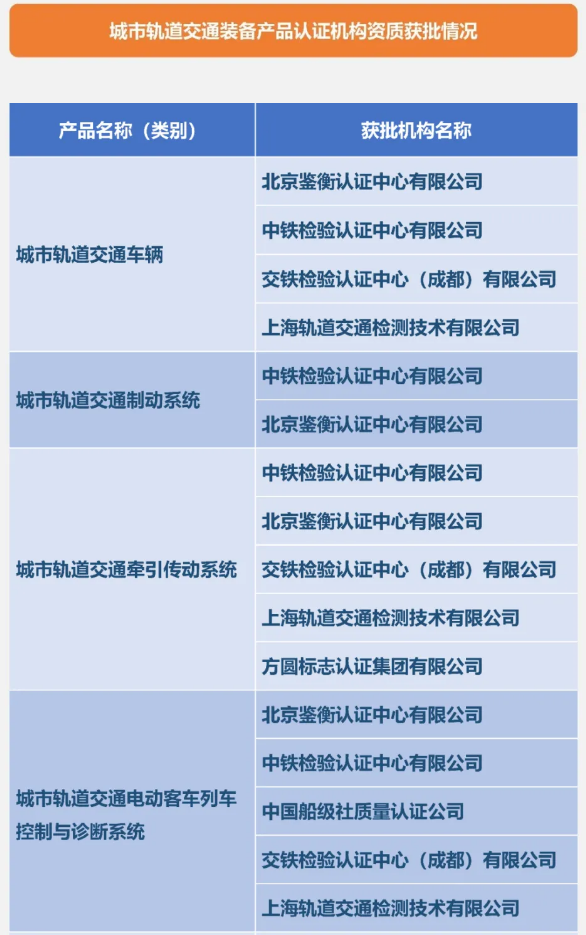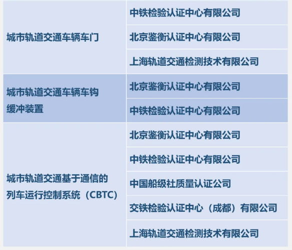 目前共有六家認(rèn)證機(jī)構(gòu)獲批CURC認(rèn)證資質(zhì),分別為中鐵檢驗(yàn)認(rèn)證中心有限公司、北京鑒衡認(rèn)證中心有限公司、船級(jí)社質(zhì)量認(rèn)證公司、交鐵檢驗(yàn)認(rèn)證中心(成都)有限公司、上海軌道交通檢測(cè)技術(shù)有限公司、方圓標(biāo)志認(rèn)證集團(tuán)有限公司,具體資質(zhì)獲批情況見(jiàn)下表。