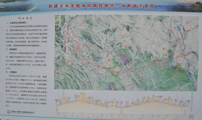 據(jù)了解,天隴鐵路總長215.258公里,其中天水市境內(nèi)59.248公里,隴南市境內(nèi)156.010公里,建設(shè)工期5.5年,投資估算總額為243.23億元,設(shè)計(jì)時(shí)速160公里/小時(shí),項(xiàng)目正線共設(shè)橋29.558公里/42座,隧道165.804公里/29座,橋隧比90.76%,其中隧道占線路全長的77.03%,大于10公里的隧道有6座,配套修建天水站聯(lián)絡(luò)線6.623公里,隴南西站疏解線2.623公里。該項(xiàng)目是國家中長期鐵路網(wǎng)規(guī)劃和我省“十三五”鐵路發(fā)展規(guī)劃確定的重點(diǎn)項(xiàng)目,也是我省第一條全額投資、自主修建的鐵路工程。項(xiàng)目經(jīng)天平線向東北與寶中、西平及長慶線相通,向南與蘭渝線接軌可達(dá)川渝地區(qū),途經(jīng)我省天水市的清水縣、麥積區(qū)、秦州區(qū),隴南市的徽縣、成縣、康縣和武都區(qū)。